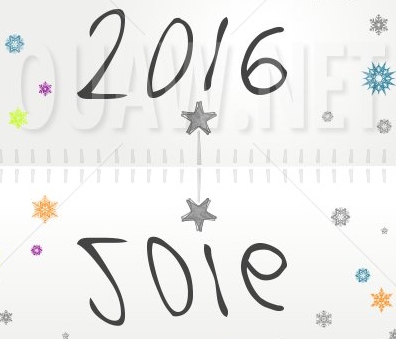 La calligraphie de 2016 ressemble étrangement aux mots « joie » et « love », deux ingrédients essentiels pour cultiver le bonheur tout au long de l’année. Quelle belle coïncidence !